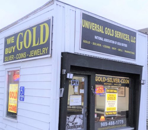 Universal Gold Services, LLC a Licensed Precious Metals Dealer will purchase your unwanted Gold & Silver jewelry, Sterling Flatware, Platinum, Coins and Bullion. We will buy your jewelry whether it consists of scrap, broken, incomplete or high quality pieces. We offer a friendly, monitored, safe, and secure place where our customers can sell their old or unwanted gold and silver. Our integrity, experience, and customer service is second to none. During the past 15 years we have served the Mid Michigan area. Turn your unwanted, outdated, or old gold and silver into cash.